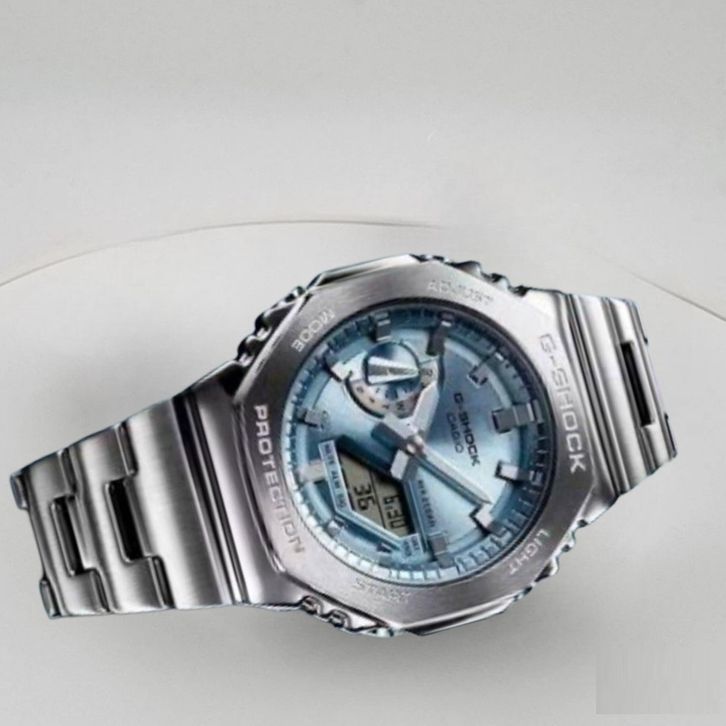 JAM TANGAN PRIA G-SHOCK GA-2100 LIMITED EDITION SILVER BLUE STAINLESS STEEL FREE ONGKIR - FREE BOX