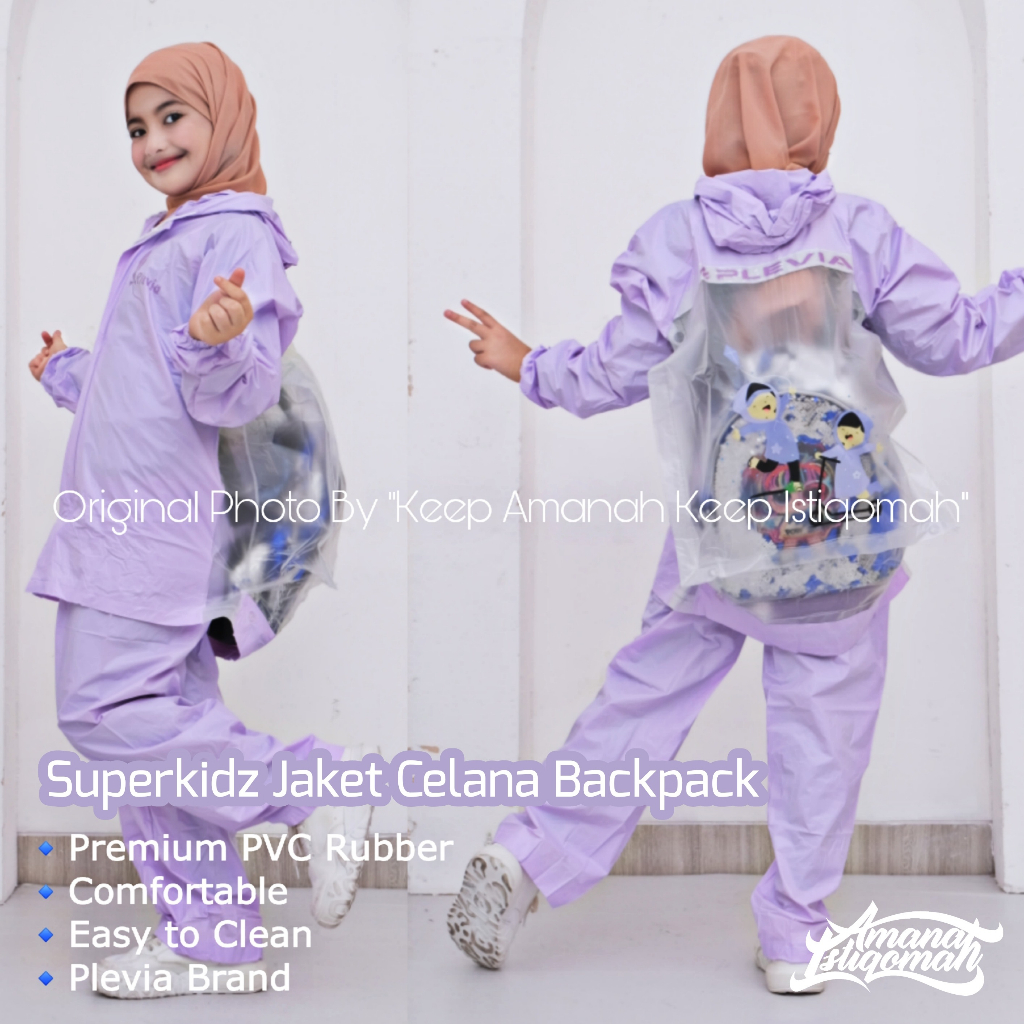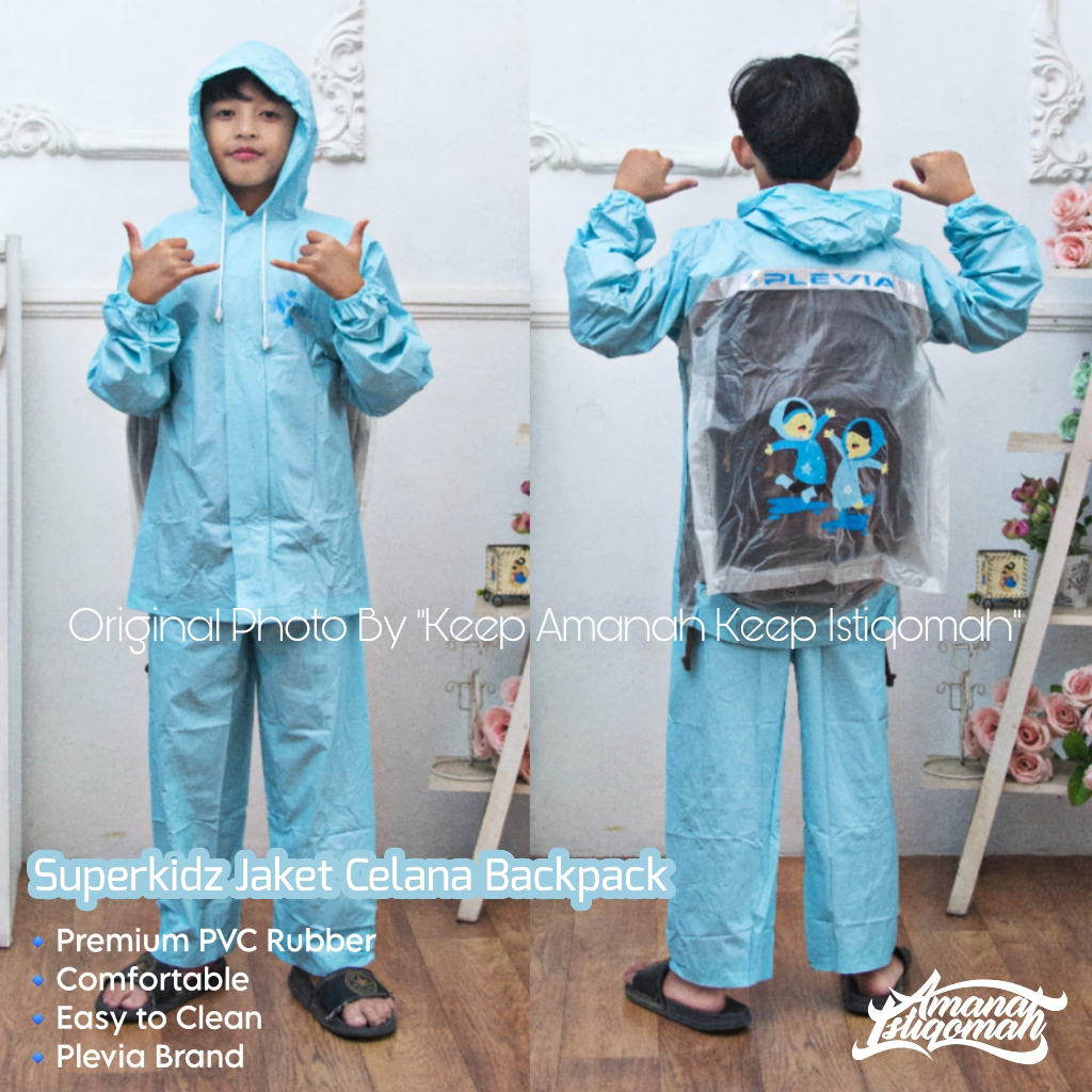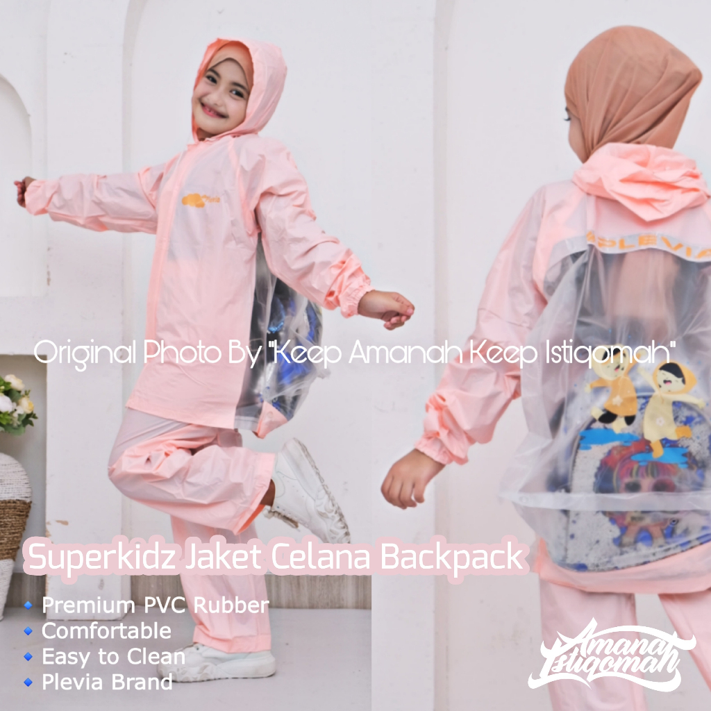 Superkids Jaket Celana Anak Backpack Jas Hujan Anak Backpack