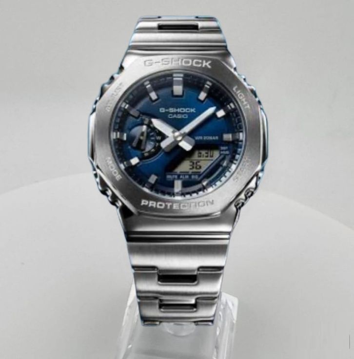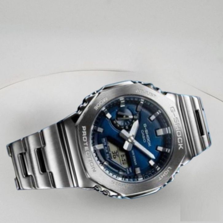 JAM TANGAN PRIA G-SHOCK GA-2100 LIMITED EDITION SILVER NAVY STAINLESS STEEL FREE ONGKIR - FREE BOX