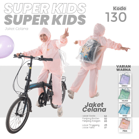 Jas Hujan Anak Backpack 6-12 Tahun TK SD Laki Laki Perempuan Super Kid 130 Plevia Setelan Superkids