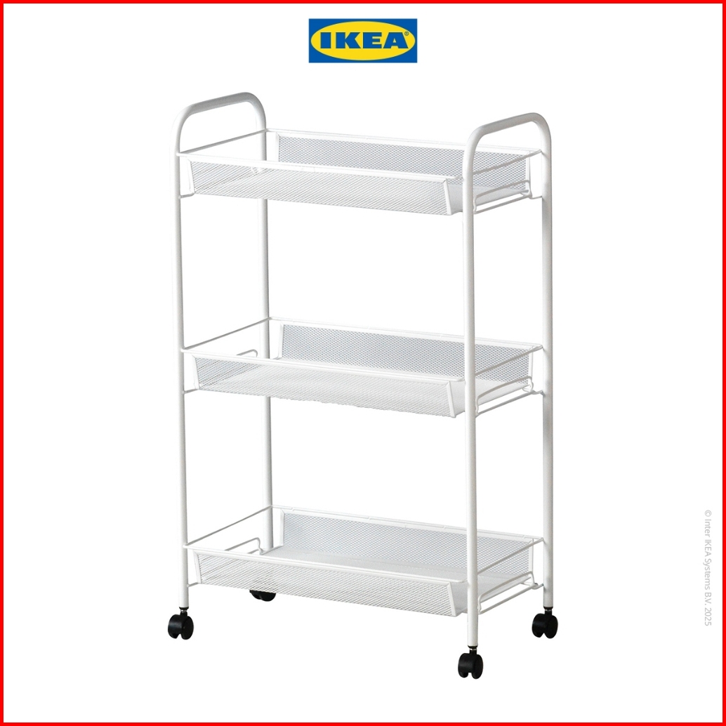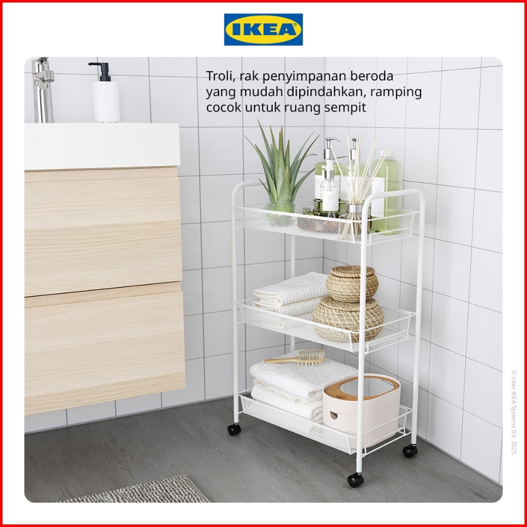 Ikea Hornavan Troli Kamar Mandi Putih Dengan 3 Rak 26x48x77 Cm