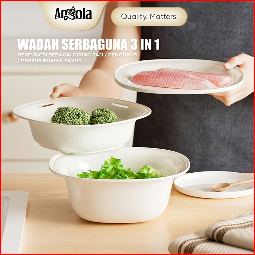 Angola Wadah Serbaguna 3in1 E78 Tempat Wadah Microwave Food Steamer Makanan Wadah Saji Wadah Pencuci Buah Sayur