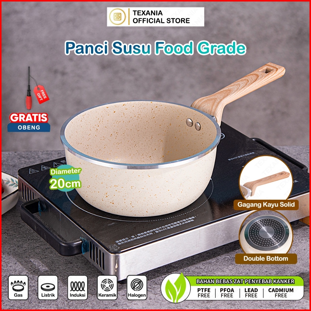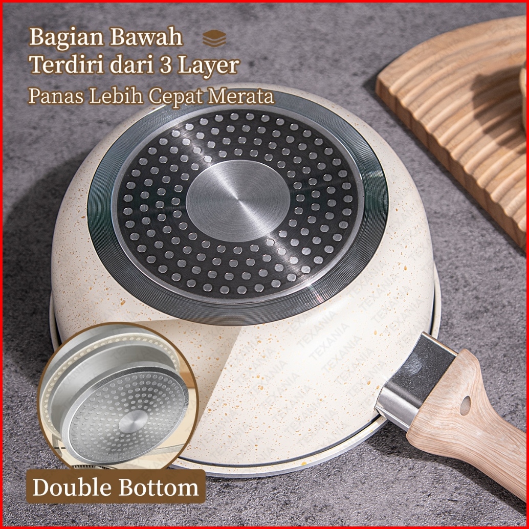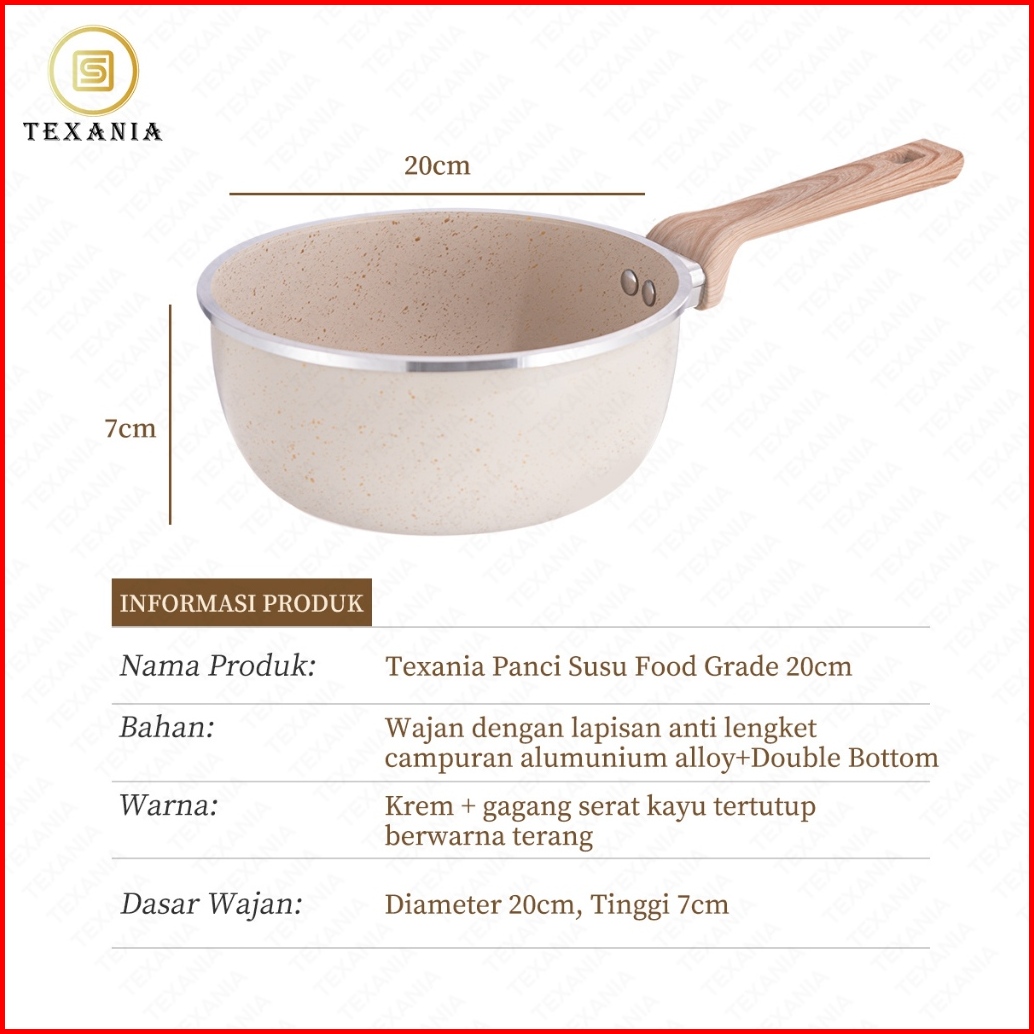24 Jam Dikirimtexania Saucepan Panci 20cm Wajan Anti Lengket Warna Cream Aluminium Aloy Double Bottom Mudah Dibersihkan