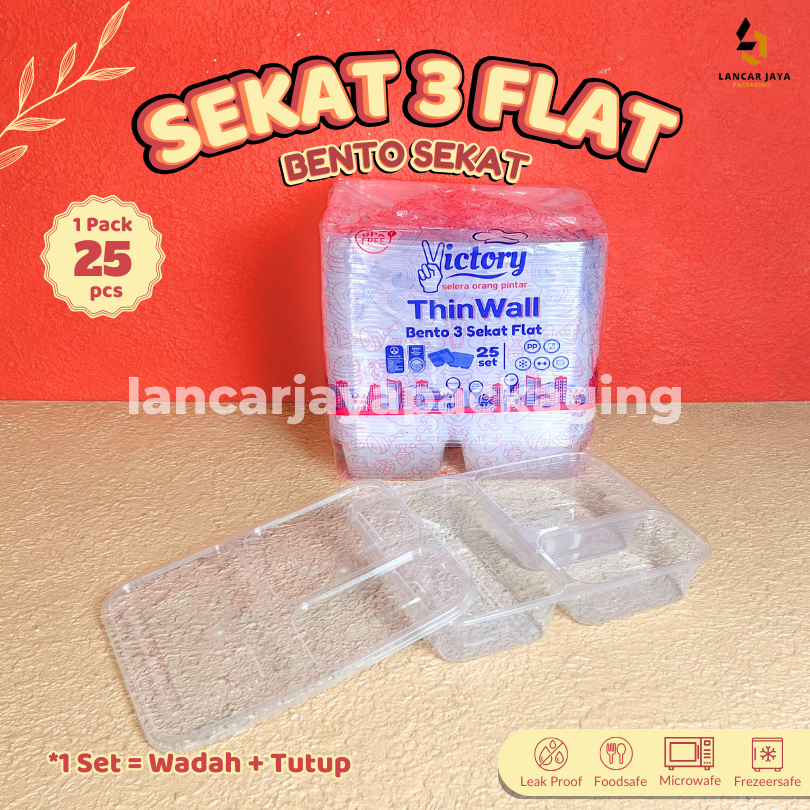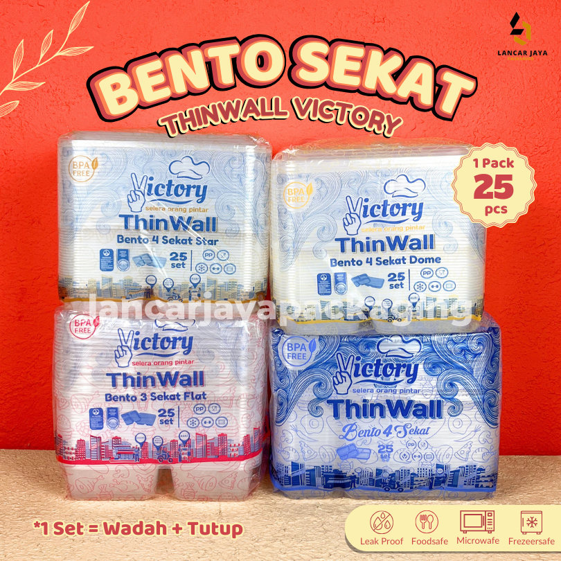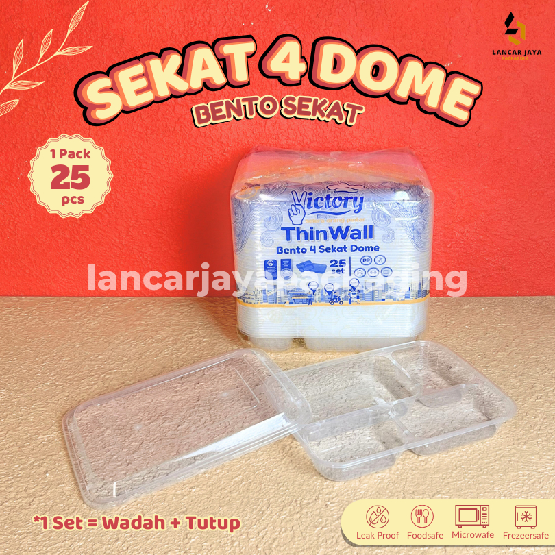 25 PCS Thinwall Bento Sekat 4 3 Victory Flat Dome Star Kotak Makan Plastik Catering Kemasan Take Away