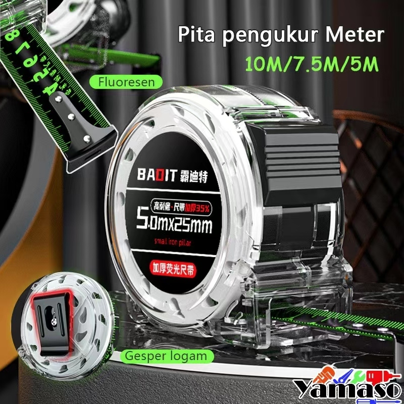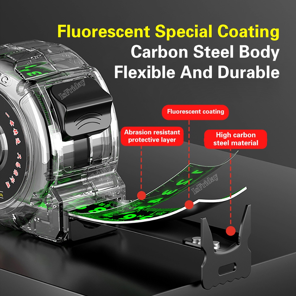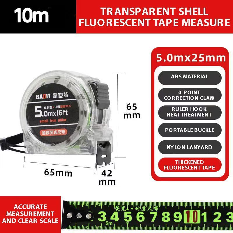 Meteran besi Pita pengukur baja tahan karat 10 METER penggaris fluoresensi transparan