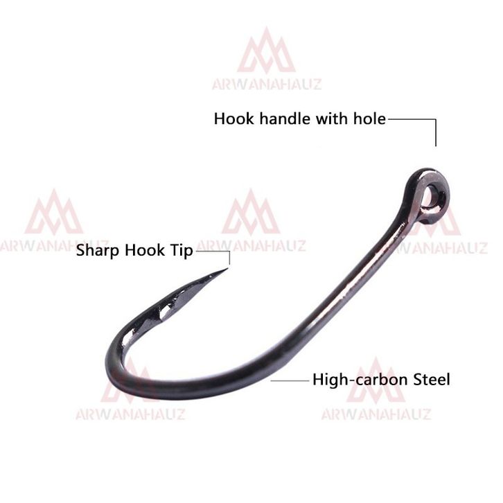 MURAH 100/500Buah Kait Ikan Baja Karbon Kail Pancing Ikan Tajam dari No.3 s/d No.12 Kail Pancing 1 Set Box Kail