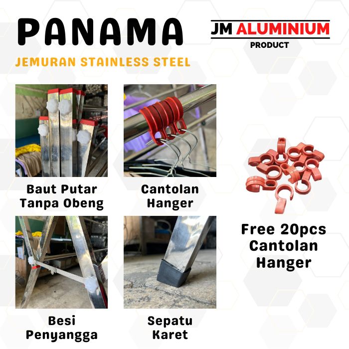 TERBARU Jemuran Stainless Steel JUMBO SUPER | Panama - 1,8 M / 180 CM | Palang 9 | S/D 100KG acefk