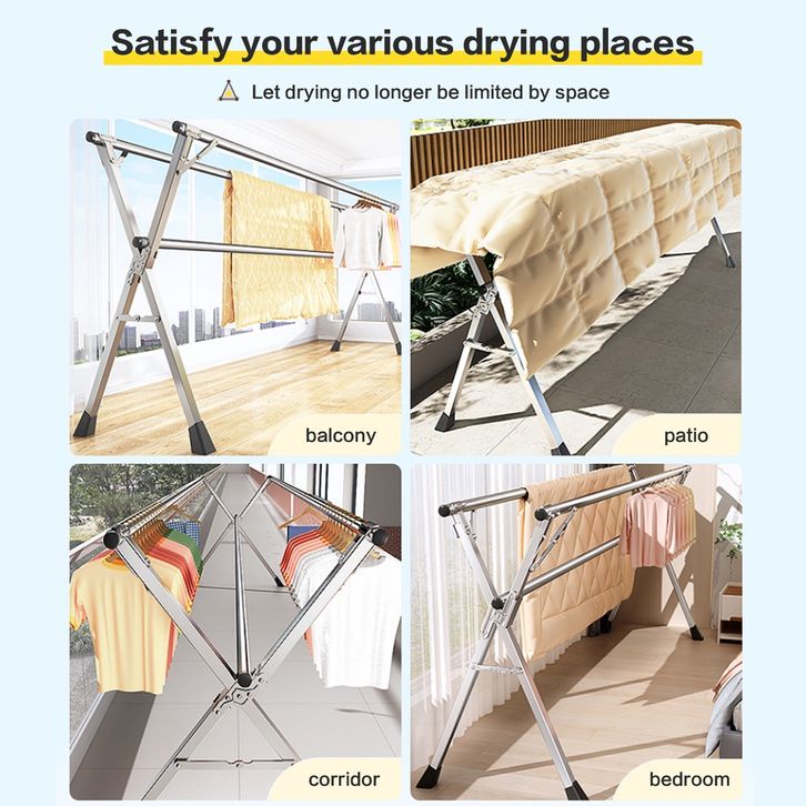 TERLARIS Jemuran baju stainless steel/Jemuran/Jemuran Baju Lipat Stainless Steel Portable【Tidak diperlukan