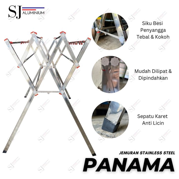 TERMURAH Jemuran Stainless Steel Jumbo Palang 9 / Rak Baju Handuk Pakaian Hanger Lipat Bayi Panama - 180 CM / 1,8