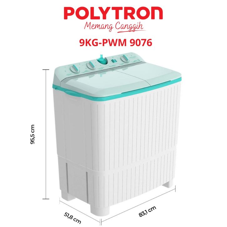 POLYTRON Mesin Cuci & Pengering 2 Tabung 9KG PWM-9076 Washing Machine Twin Tube