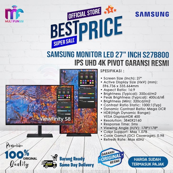 Samsung Monitor LED 27" Inch S27B800 IPS UHD 4K Pivot Resmi