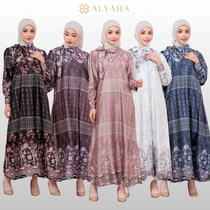 GROSIR ALVARA Gamis Wanita Model Terbaru 2025 Dress Kondangan Elegant Motif Slik Premium Big Size Jumbo asedc