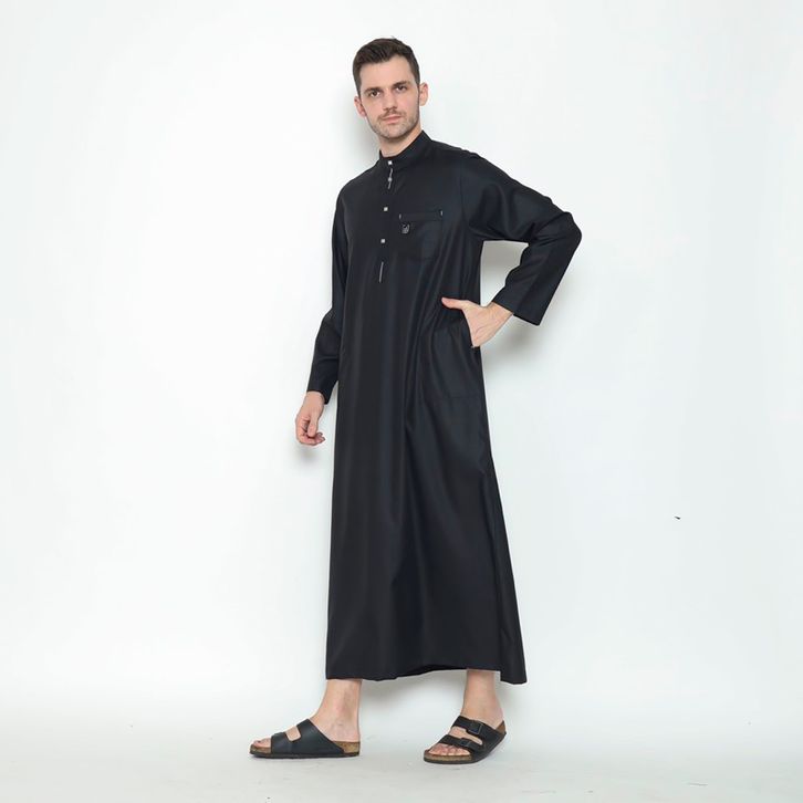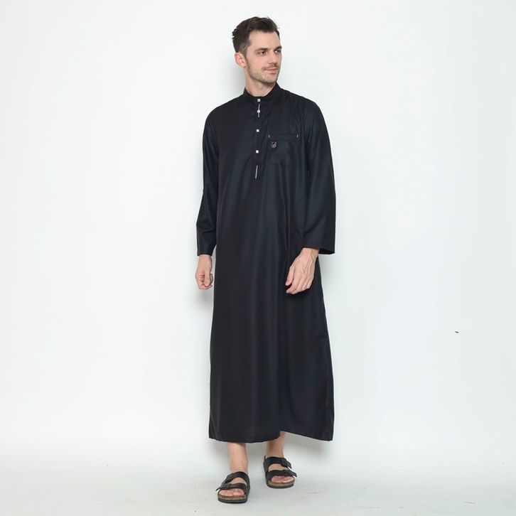 Jubah Gamis Pria Dewasa Hitam Lengan panjang Motip Terbaru Kancing Jepret Toyobo Premium Jubah Haji dan Umroh