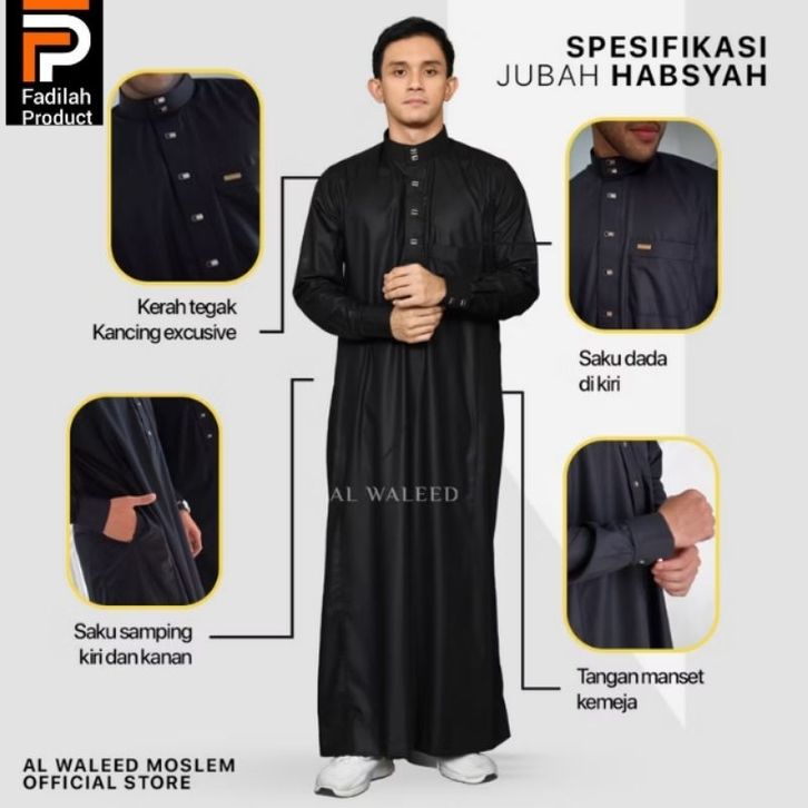 Jubah Exclusive Habsyah Lengan Panjang Jubah Slimfit Gamis Jubah Pria Jubah Pria Muslim Pria Busana Muslim Jubah Hitam