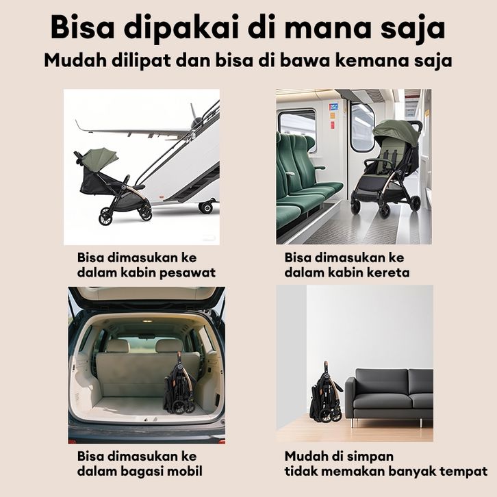[Terjamin Aman kestabilannya]Stroller bayi Kereta Dorong baby stroller Mudah untuk dibawa Bayi Lipat