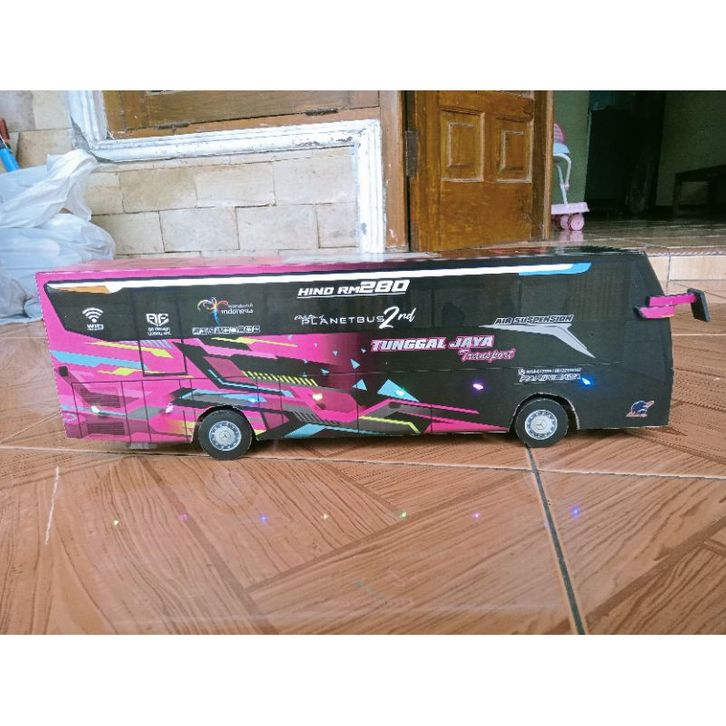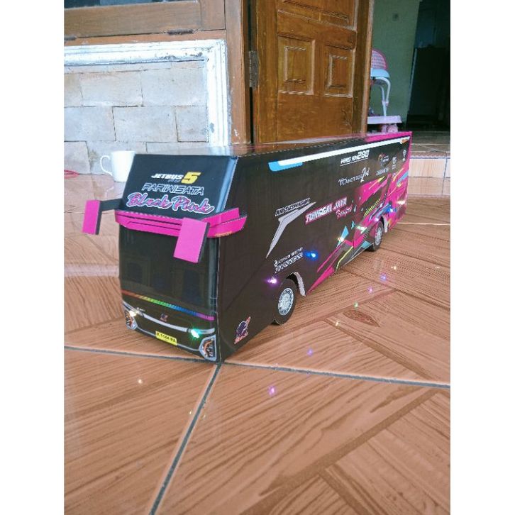 Promo miniatur bus telolet basuri ful lampu black pink New