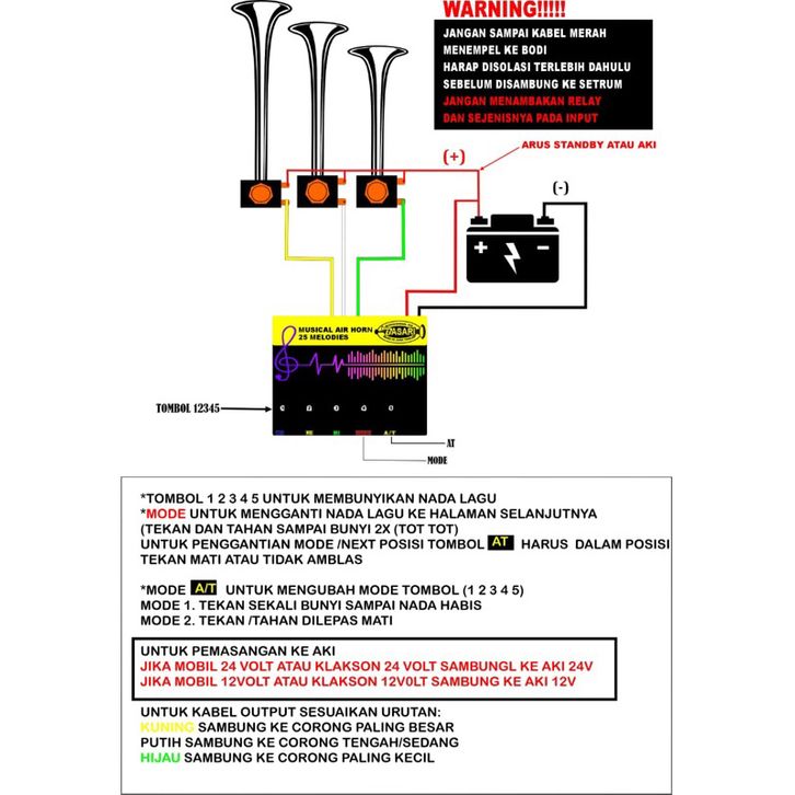 Promo UL KLAKSON TELOLET 3 CORONG BASARI 25 NADA 10 TOMBOL UNIVERSAL 12V 24V(UL SAJA) PIALA DUNIA