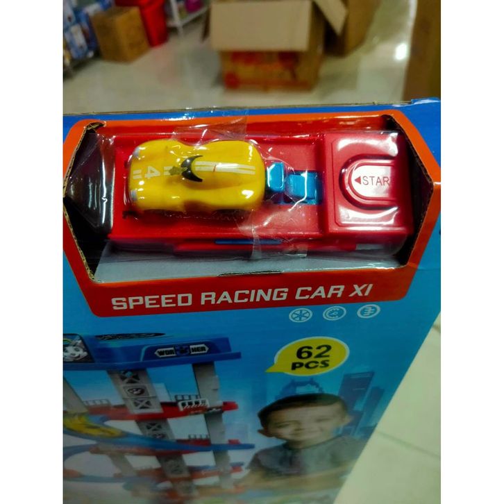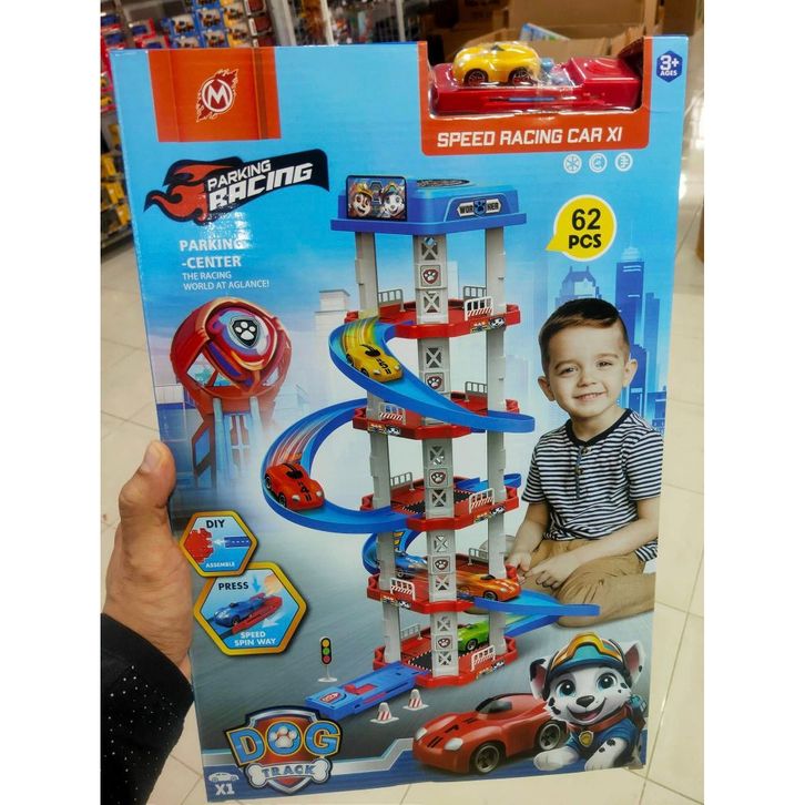 Promo mainan anak dog track racing car parking garage DIY assemble 62pcs New