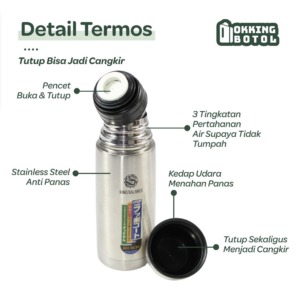 TERMOS AIR PANAS TERMOS KAPSUL STAINLESS STEEL 350ML 500ML 750ML 1000ML FREE TAS 661