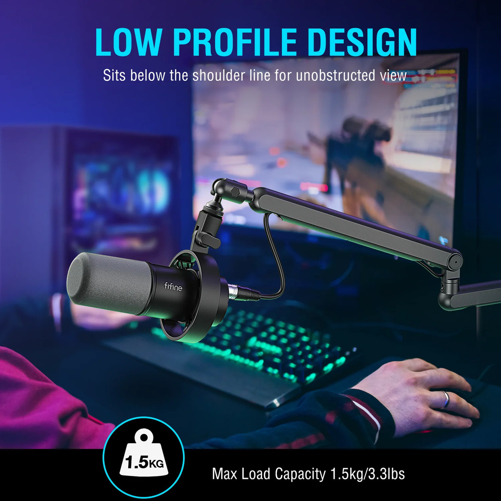 NEW ORIGINAL Fifine Mic Boom Arm Stand with Build-in Springs Handling Max 2 KG for All Standard Mic Mounts 360°