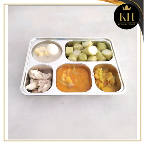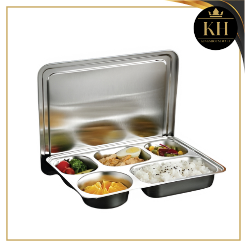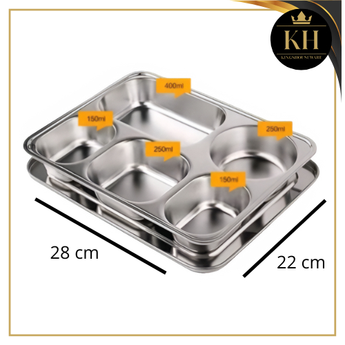 KH - Lunch Box 5 Sekat / Wadah Saji Tray Makan Stainlees / Box Kotak Makan Tutup Stainless Tutup Plastik