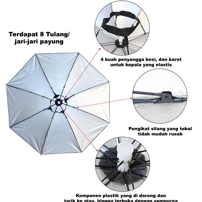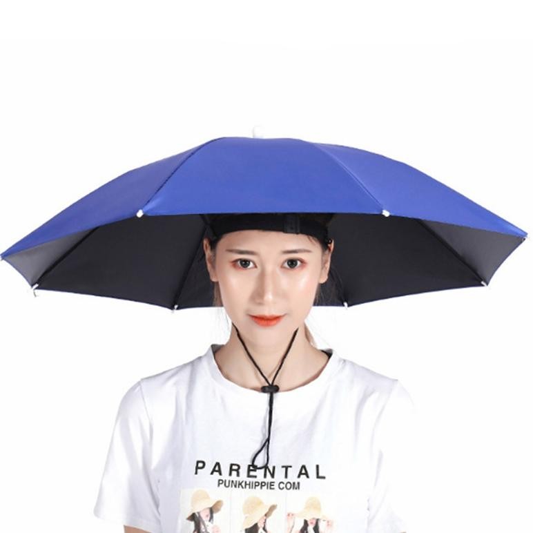 Vm - Topi Payung Dewasa Mancing Anti Sinar Uv Hujan Panas Umbrella Hat Traveling Tebal Fashion Outdoor