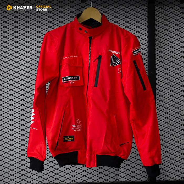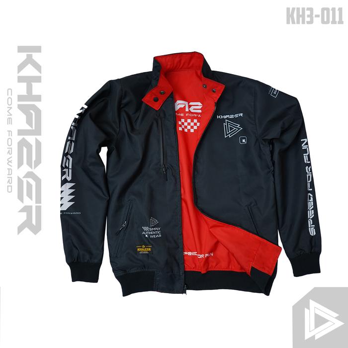 Jaket Reversible Safety Touring Red Black Jaket Bolak Balik Pria Jaket Motor Cowok Tebal Waterproof Bomber Jaket Kerah