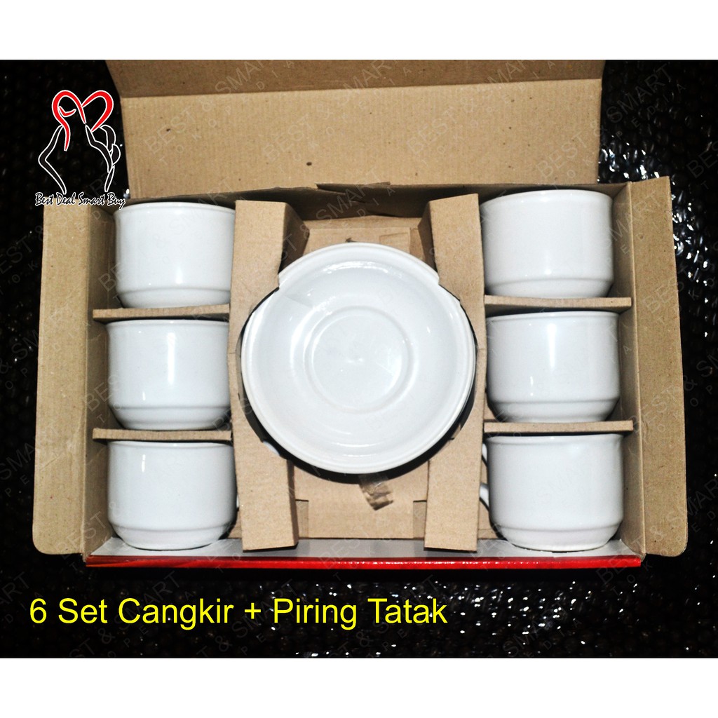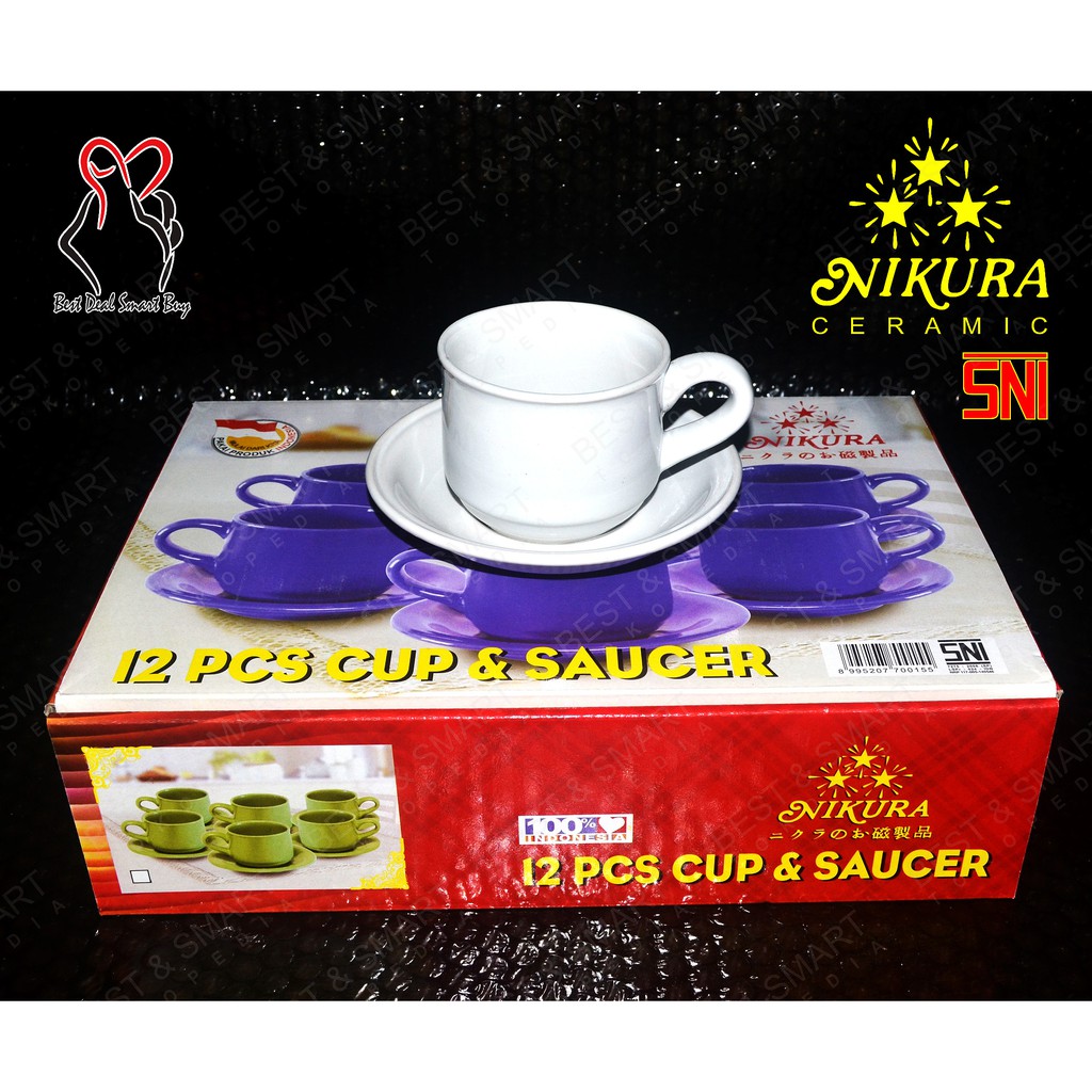 [Star]Cangkir Set Nikura Putih / Cangkir Saucer Teh Kopi 250ml 6 Pasang