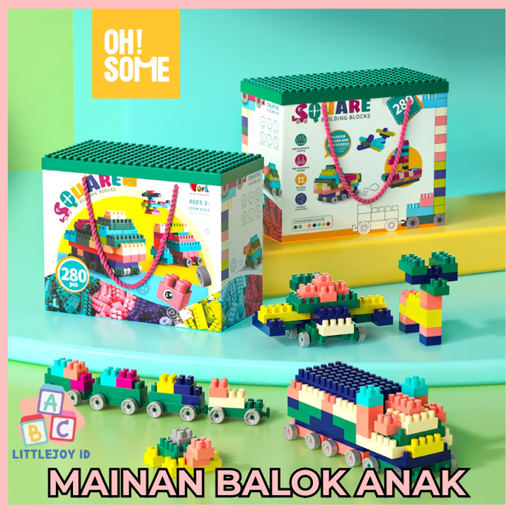 Mainan Anak Laki Laki Perempuan OHSOME Mainan Brick Balok Susun Anak DIY 280pcs Bahan ABS Kuat Tahan Lama