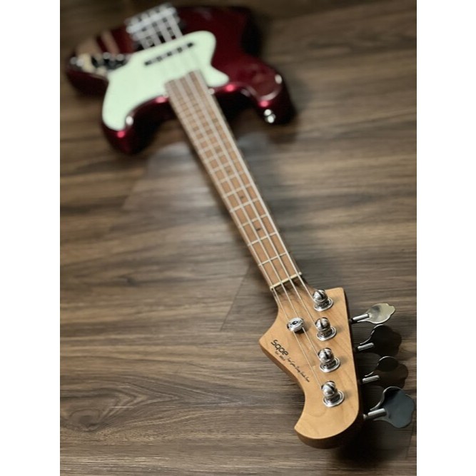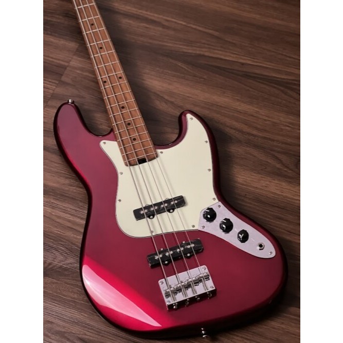 SQOE SJB600 ROASTED MAPLE SERIES IN CANDY APPLE RED ELECTRIC BASS