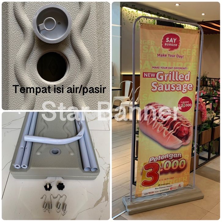 Standing Water Tank Door Frame Banner 60x160 bisa di isi air atau pasir