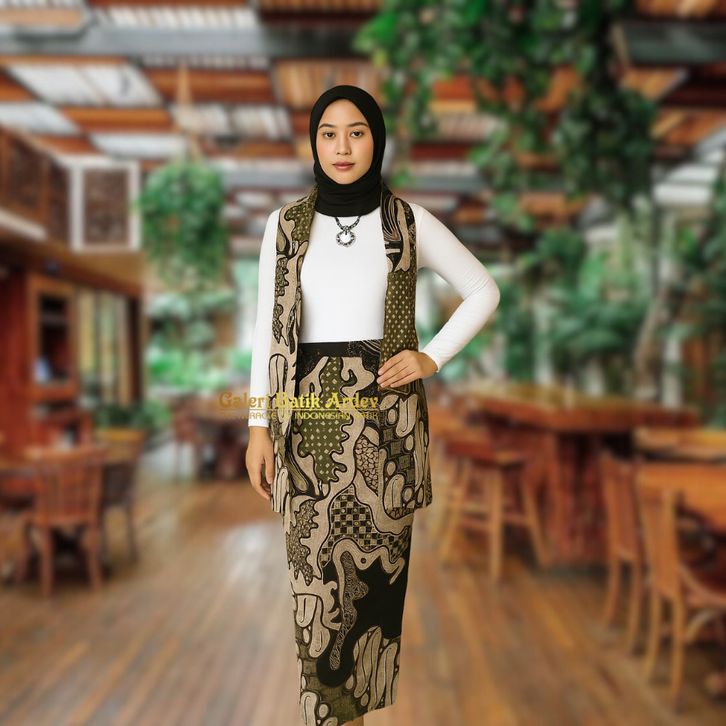 TERMURAH Galeri Batik Ardev - NIrvata Rok Warna Hijau Model Span Instan Bahan Halus Berselendang enahf