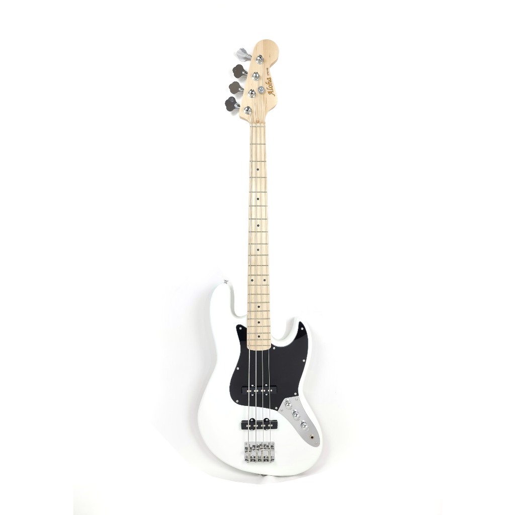 Bass Elektrik Merk Aloha Original Model Jazz Bass Senar 4 Warna Putih Bonus Kabel Jack Listrik Murah Jakarta