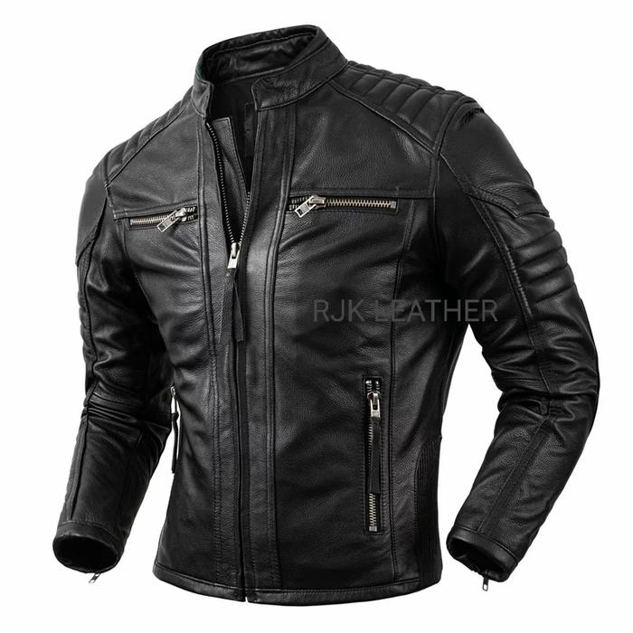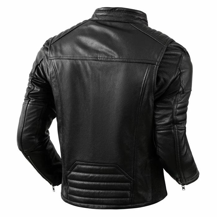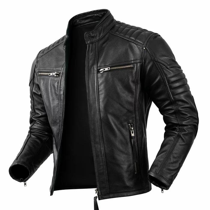 Jaket Kulit Motor Pria Original Dari Kulit Domba Casual Keren Cowok - Hitam, S