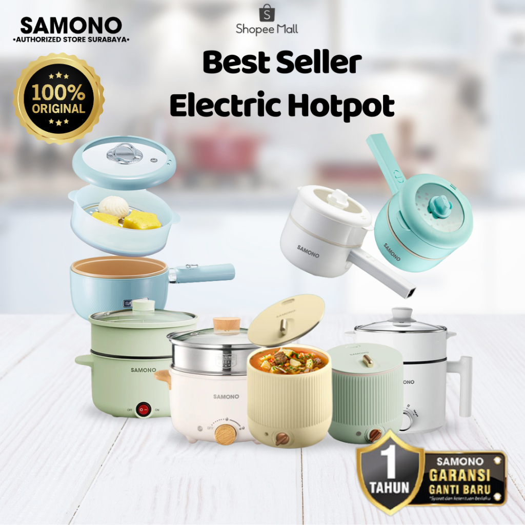 SAMONO Panci Listrik Electric Hotpot Low Watt Double Safety Protection Wadah Anti Lengket Ceramic Coating Penutup Kaca F