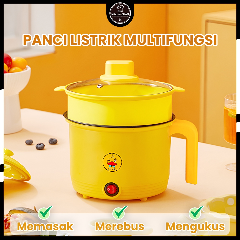 Panci Listrik 1.8L Dengan Pengukus Plastik - Teflon Anti Lengket - Cepat Panas | KITCHEN STUFF