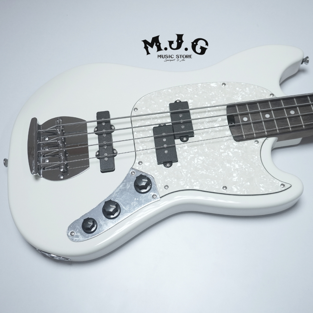 Bass elektrik sqoe SPJ400 short scale roasted maple Olympic white