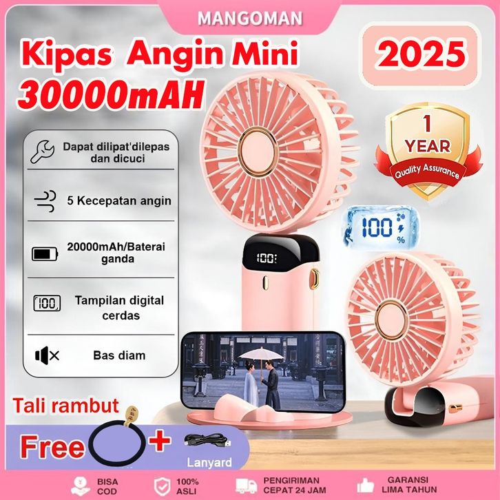 NEW Arrival Kipas Angin Mini Portable Usb 15000 20000 mAh Kipas Lipat / Leher 5-Speed Wind LED Display ahacf