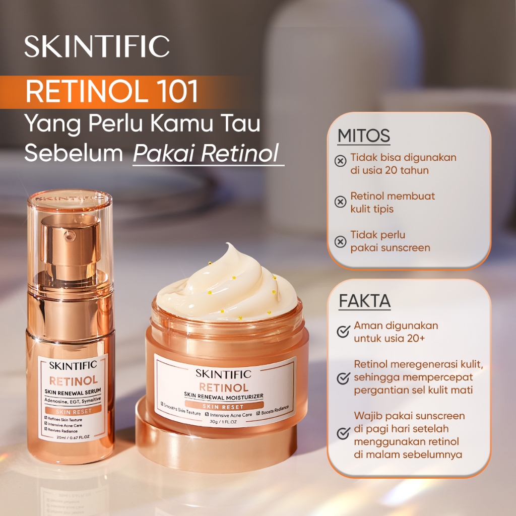 SKINTIFIC OFFICIAL STORE 2PCS PAKET Anti Aging Set Retinol Skin Renewal Moisturizer 30g Retinol Skin Serum 20ml