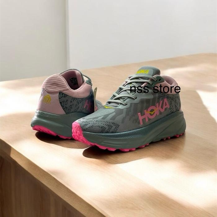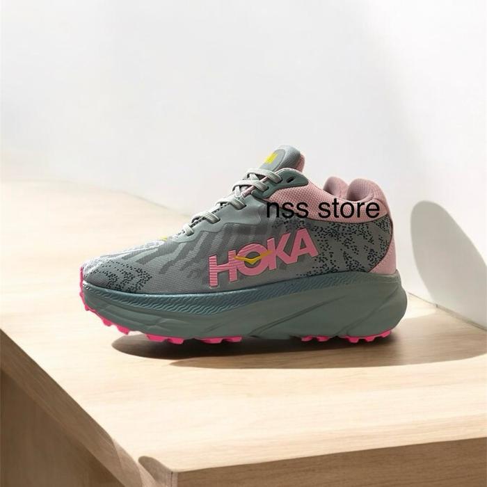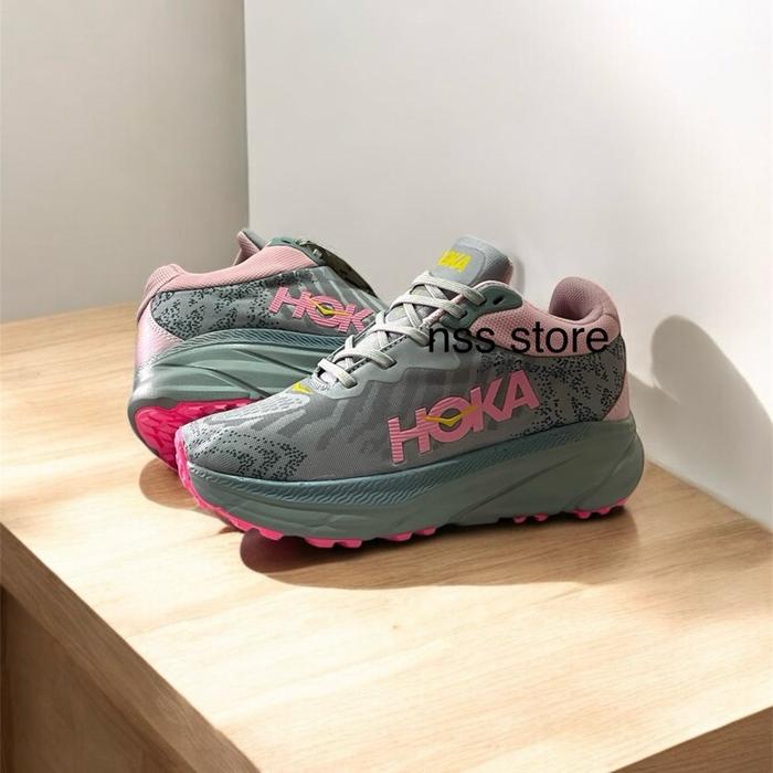 [Star]Sepatu Lari Senam Aerobik Zumba fitnes Wanita Hoka Atr Challenger7 Grey Pink Sport Olahraga Outdoor Running - Abu