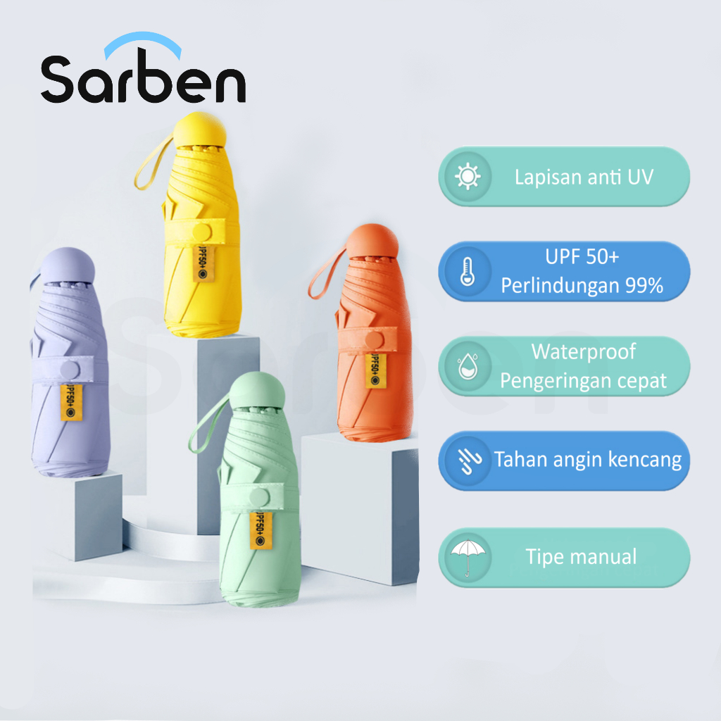 Sarben - Payung Lipat Capsule Anti UV Matahari - Payung Travel dengan Tempat Penyimpanan - Original