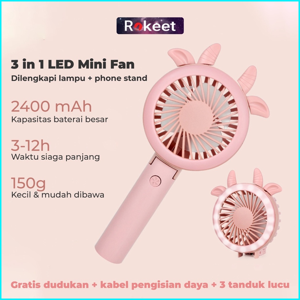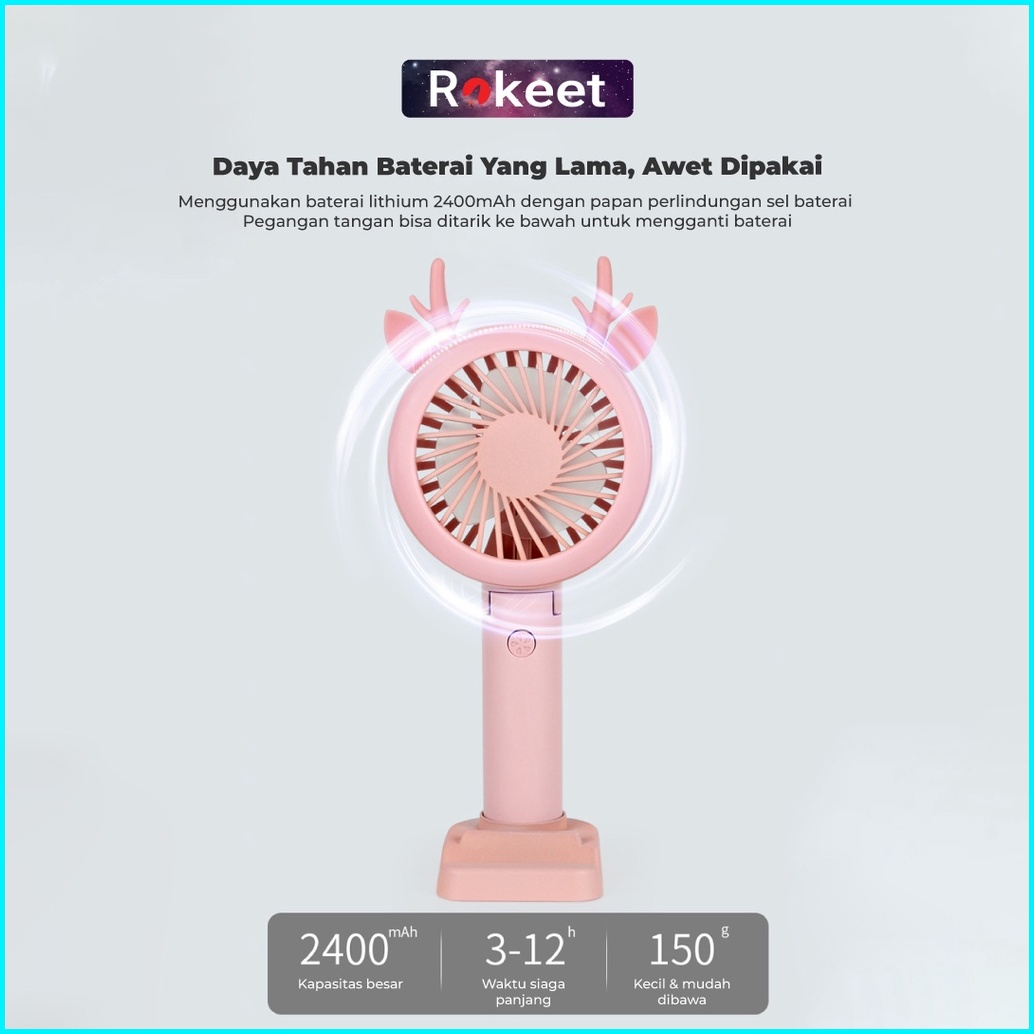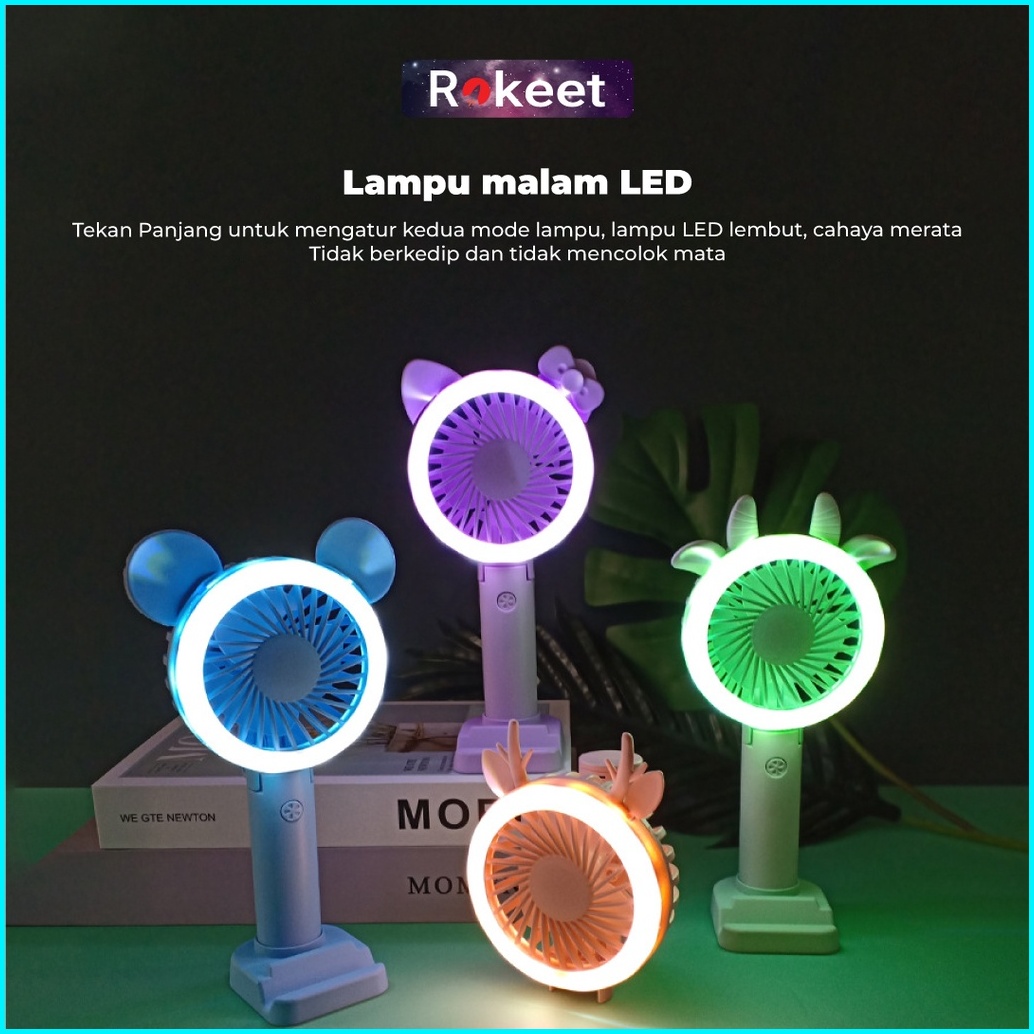 Rokeet Kipas Angin Karakter Korea Design Led Portable Recharge Fan Usb