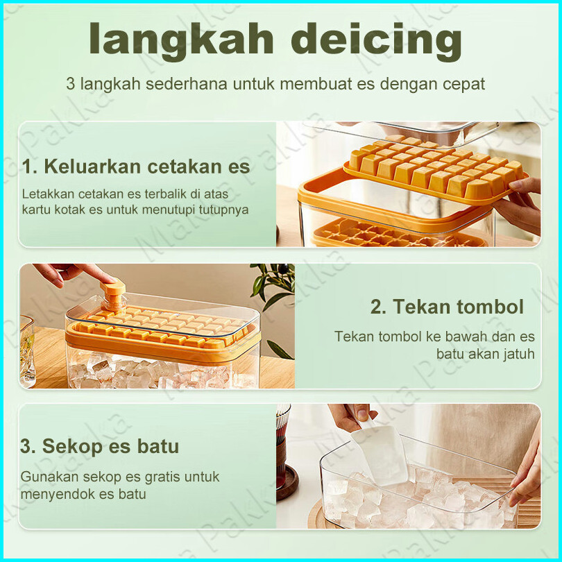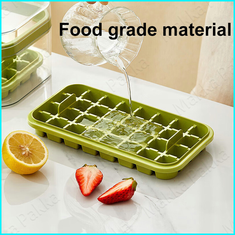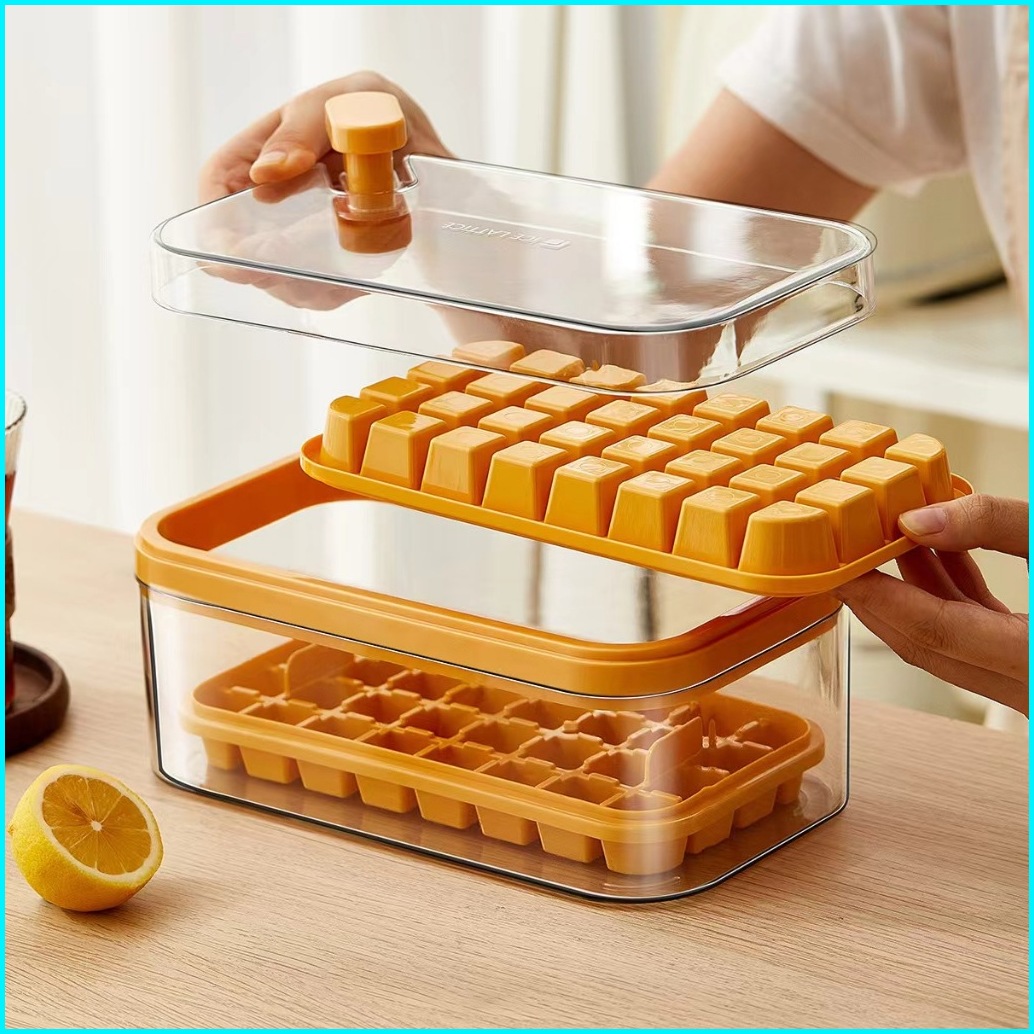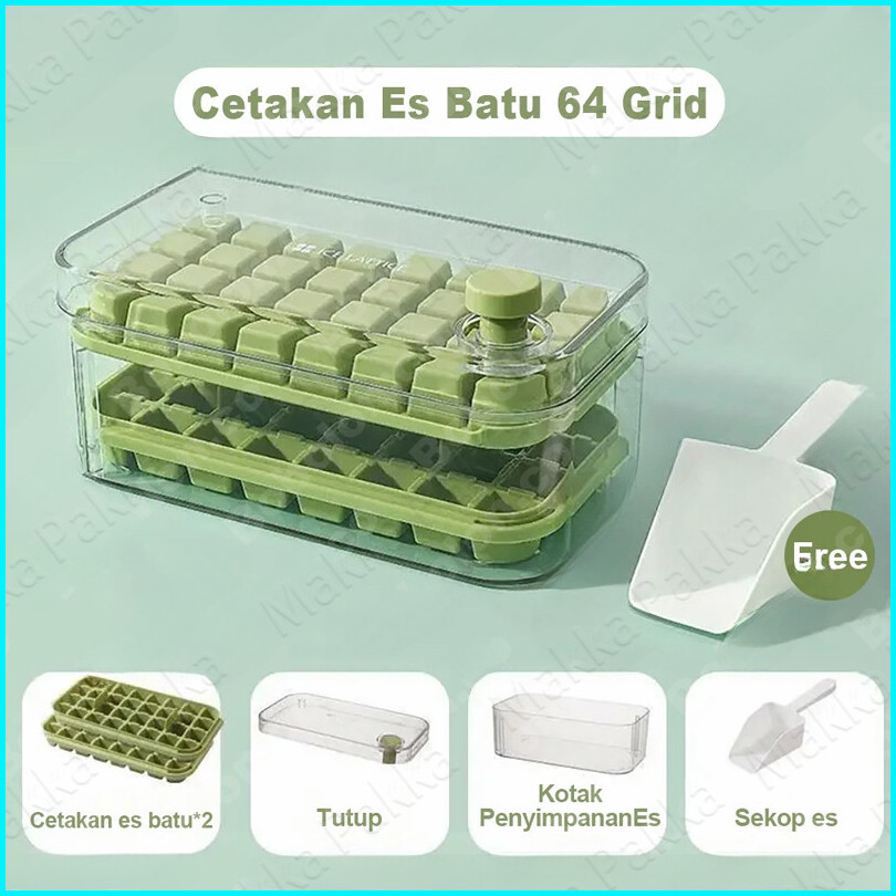 64 Grid - Cetakan Es Batu Ice Cube Maker Dengan Press Handle Sekali Tekan Food Grade Ditekan Kotak Penyimpanan Es Batu A
