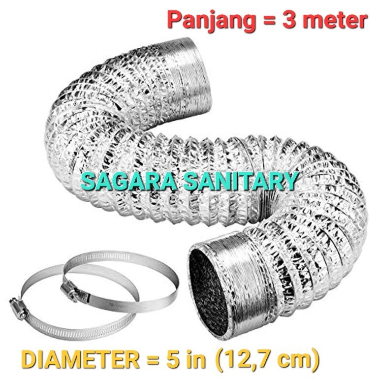 pipa selang cooker hood 5 in panjang 3 meter tahan panas + klem 2 pcs