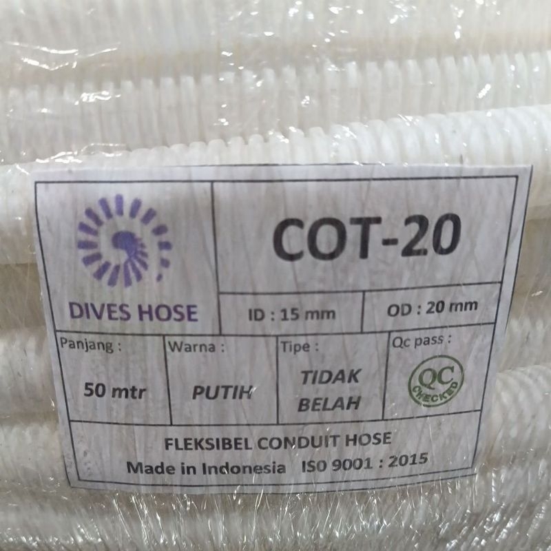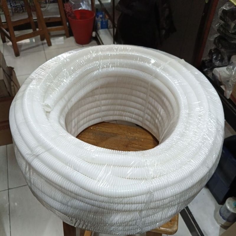 SELANG FLEXIBLE CONDUIT PEMBUANGAN AIR AC 50 METER FULL HITAM/PUTIH 20MM
