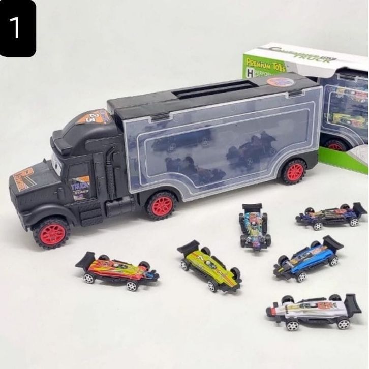 Promo Mainan anak Container Truck Isi 6 Mobil No PR 17419 Dicast Car New