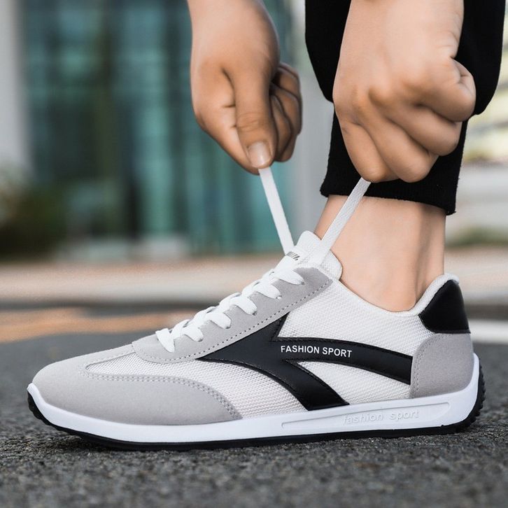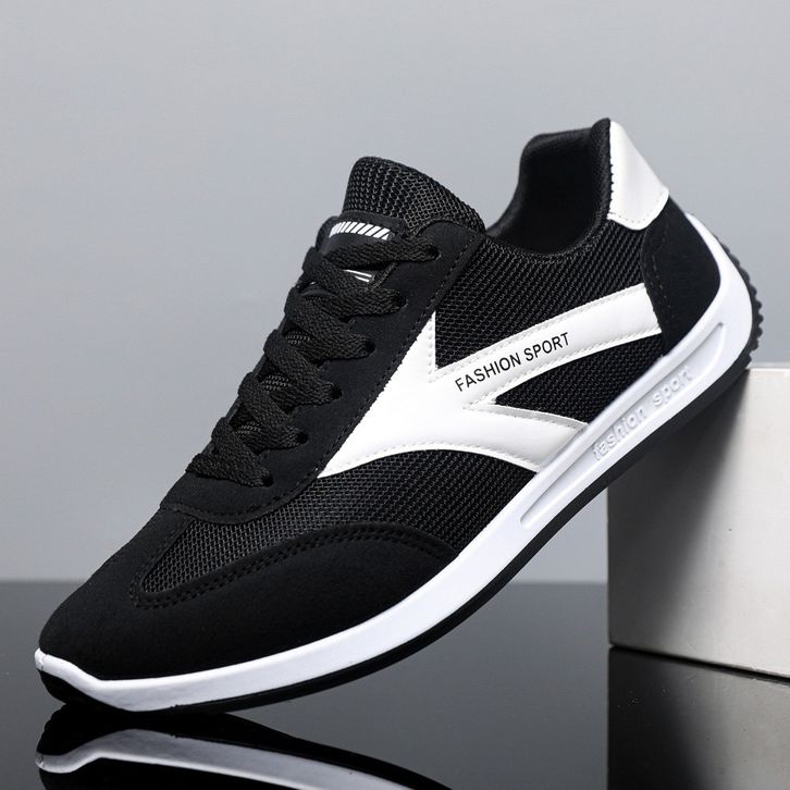 MYLY Sepatu Frontside Sneakers Sporty Desain Bahan Mesh Hitam dan Putih Olahraga