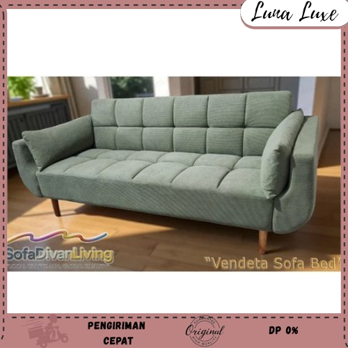 Kursi Ruang Tamu Sofa Bed Vendeta Minimalis 2 dan 3 Seater – Sofa Lipat Sofabed Multifungsi Kaki Retro Kain Corduroy