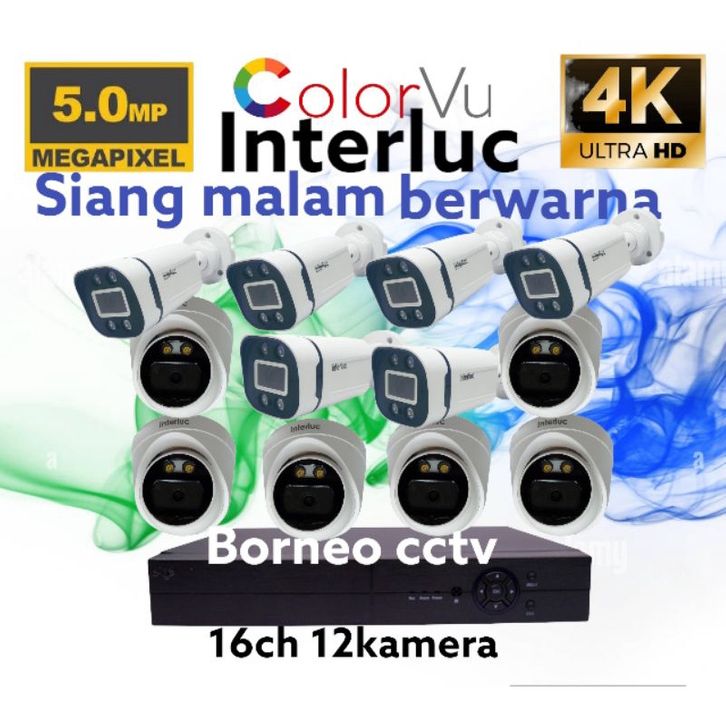 PAKET CCTV 5MP COLORVU 16 CHANNEL 12 KAMERA 4K ULTRA HD 2560P FULL COLOR