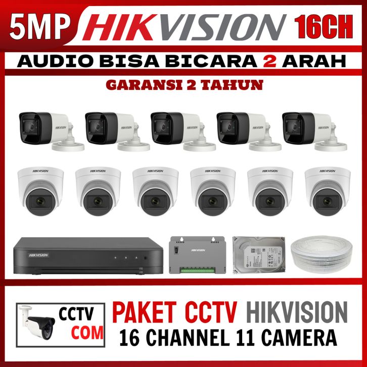 PAKET CCTV HIKVISION 5MP 3K 16 CHANNEL11 CAMERA TWO WAY TALK AUDIO / AUDIO 2 ARAH TURBO HD